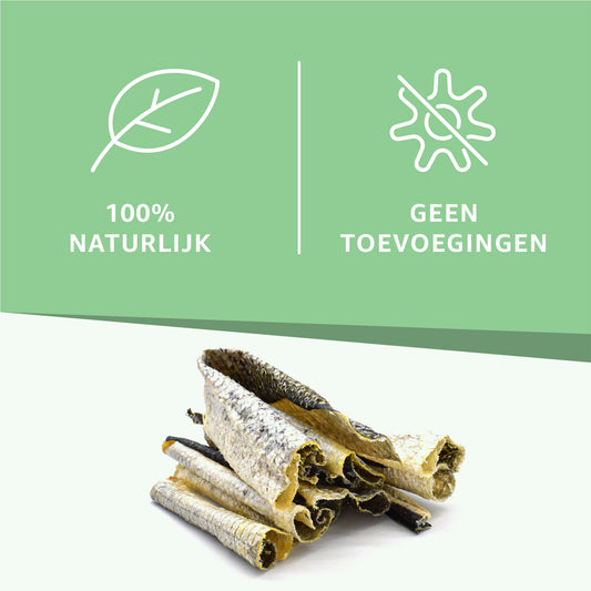 Regular price From €3,53Regular priceUnit price / perSale price From €3,53Trakteer uw trouwe viervoeter op puur genot met onze heerlijke zalmhuid hondensnacks. Ontdek de perfecte combinatie van smaak en gezondheid voor uw harige vriend. Onze hoogwaardige zalmhuid snacks zijn rijk aan omega-3 & 6 vetzuren, bevorderen een glanzende vacht en ondersteunen de algehele gezondheid van uw hond. Verwen uw trouwe metgezel vandaag nog met deze onweerstaanbare lekkernij. Gezondheid en smaak in elke hap.- Geen toevoegingen